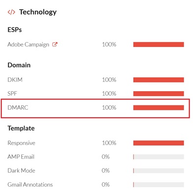 Users can run Dashboard reports for DMARC for any date range they would like. By running a Dashboard Report for a brand, users can see the percentage of all emails sent by a brand that pass DMARC. This is a great way to better understand adoption of DMARC and if a brand's emails are consistently passing DMARC.