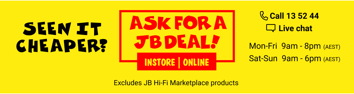 *Offer available instore, online and by phone. For online/phone orders, JB Hi-Fi gift card emailed 2 weeks after the delivery or instore collection of online purchases. For instore purchases, JB Hi-Fi Gift Card provided at time of purchase. Excludes products purchased from third party (JB Hi-Fi Marketplace) sellers. Full payment for products must be made by offer end date. Limit of one claim per customer/and per email address. Excludes commercial orders. Gift card subject to Terms and Conditions at