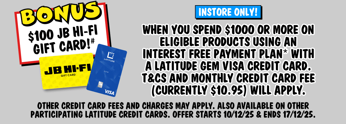 jbhifi.com.au/pages/interest-free-finance for further details and T&Cs (including General Terms & Conditions for participating Latitude credit cards). #JB Hi-Fi gift card issued in-store at time of purchase and is subject to JB Hi-Fi gift card terms and conditions, available at