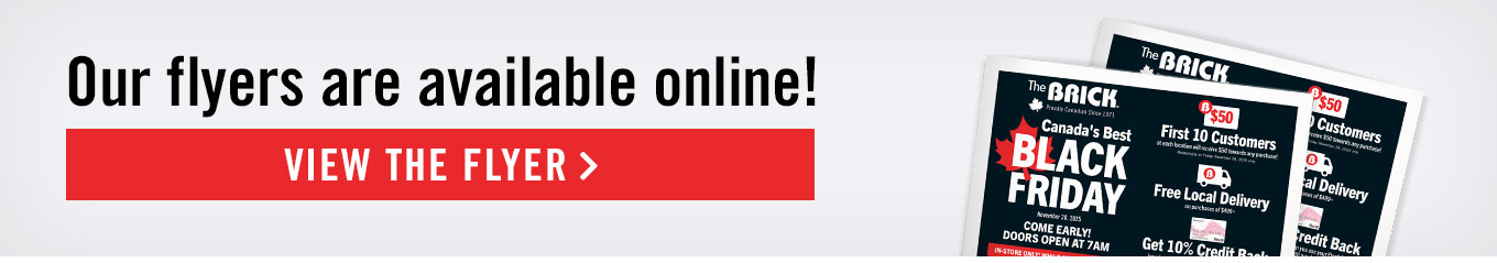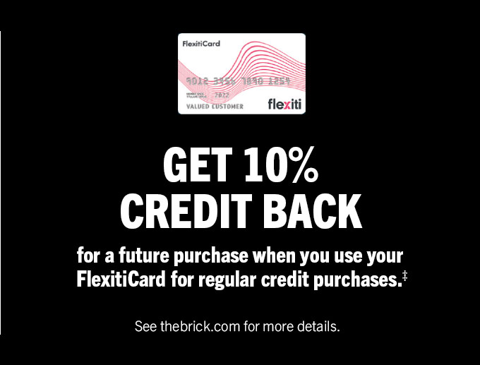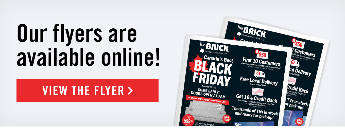 ‡Regular credit purchases do not include promotional financing plans. The Brick Bonus Voucher (Voucher) is equal to 10% of the regular credit purchases made on your FlexitiCard or Flexiti Wave Card on November 28, 2025, less returns, refunds, and adjustments. Vouchers will be issued within 30-45 days following December 31, 2025; valid email address and marketing opt-in required. Voucher may only be redeemed at participating Brick locations within 90 days of the date of issue for new product purchases on your FlexitiCard or Flexiti Wave Card and cannot be used towards payment of your FlexitiCard or Flexiti Wave Card