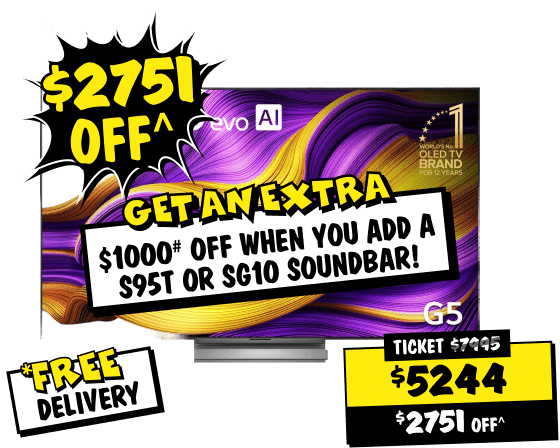 #Excludes JB Hi-Fi Marketplace Products. #When purchased in the same transaction. Discount is applied at point of sale in store and applied automatically at cart if purchased online. This offer applies to current ticketed/advertised prices. Prices of some products are likely to have changed and may have increased prior to this offer. Because of this and as we regularly negotiate on price, some products are likely to have been sold below the current ticketed/advertised prior to this offer. Prices may change after this offer. If TV or Soundbar is returned for eligible change of mind, offer will be forfeited and offer amount will be deducted from refund amount. Prices may change after offer ends. Offer ends 3 Dec 2025