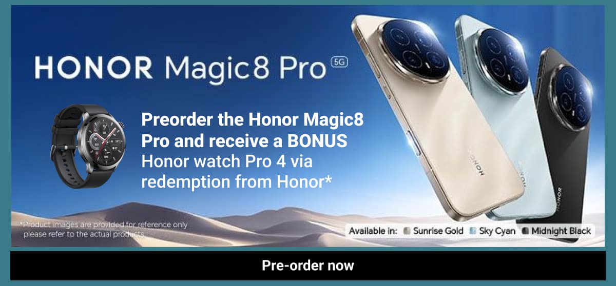 *Offer starts 15/04/2026 6PM and ends 11:59pm (AEDT) 13/05/2026. Preorder the Honor Magic8 Pro and receive a bonus Honor Watch 4 Pro via redemption from Honor at www.honorpromos.com/au. Must be claimed between 9:00am (AEDT) 16/04/2026 and 11:59pm (AEDT) 31/05/2026. Claimants must; be an AU resident, be aged 18+, maintain receipt(s), and supply the serial number (IMEI) of the eligible product. Claims will be assessed within 5 days of submission. Successful claims should allow up to 60 days for delivery of their bonus from the date of claim acceptance validation. Limit 1 redemption per person. For full T&Cs visit