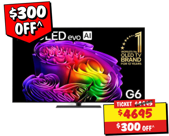 #Offer available on LG 2026 55" & above, OLED. Excludes products purchased from third party (JB Hi-Fi Marketplace) sellers. Offer available in-store only at participating stores (see