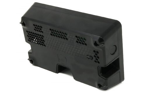 The enclosure features a rear power button extension (for Raspberry Pi 5), allowing power button access.