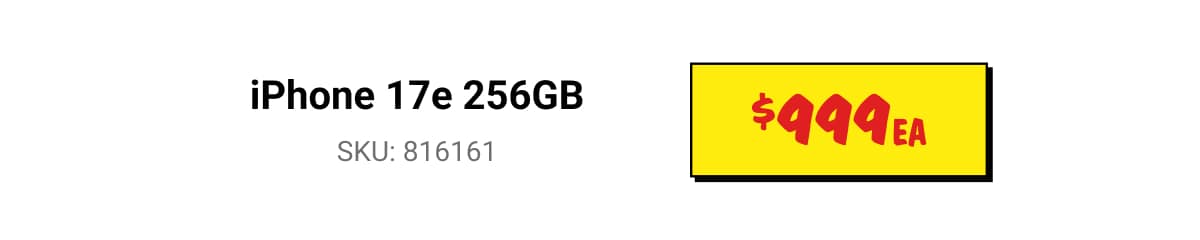 ◊Offer only available for new mobile services and eligible port-in mobile services (being an existing mobile service transferred from another provider, excluding any service that has been active on a Telstra, JB Hi-Fi, The Good Guys, or Boost plan at any time in the 30 days before the transfer). The Apple iPhone 17E 256GB (referred to as the "JB Hi-Fi Voucher" in the Telstra Terms and Conditions available at www.telstra.com.au/jbhifi-mobile-terms) replaces the dollar value of the Voucher in the Critical Information Summary and will be available to you instore after connection approval by Telstra. If you cancel or move to a lower cost/different plan then you must pay a Voucher Repayment Fee to Telstra pro-rated against the remaining months of your plan's minimum term. This offer is not available in conjunction with any other JB Hi-Fi mobile or broadband offer and is limited to 3 connections per customer.