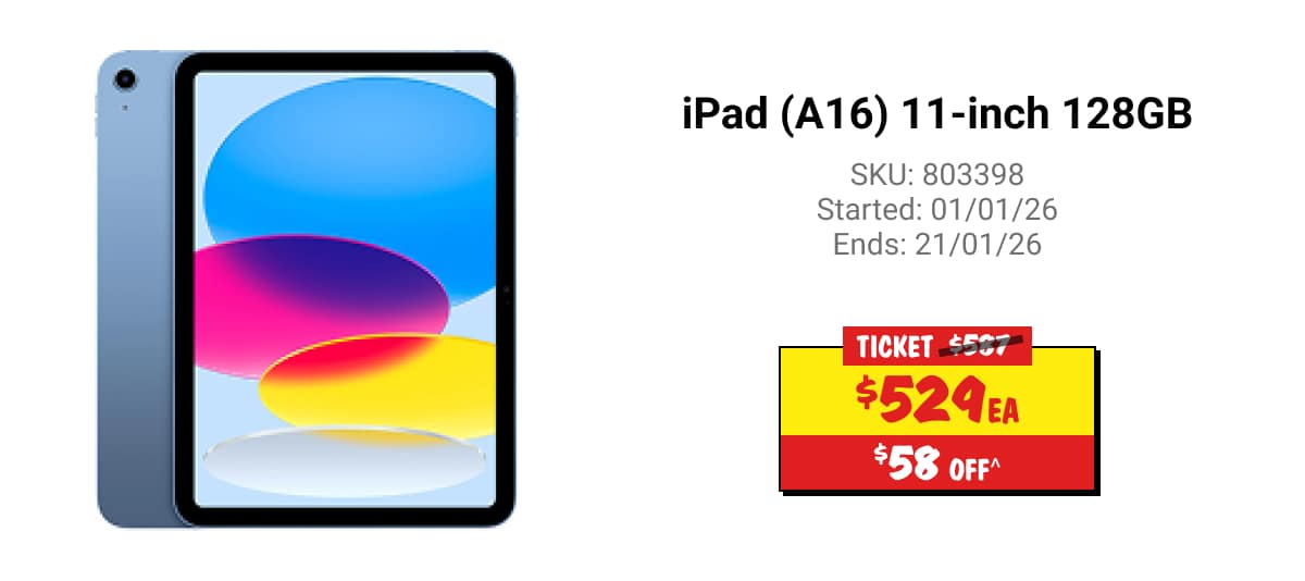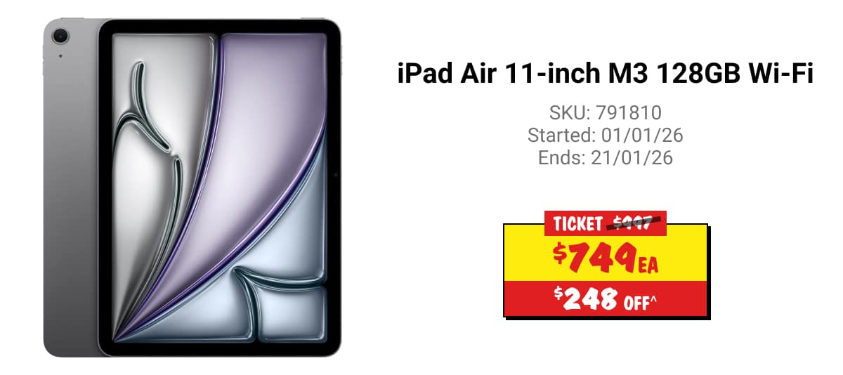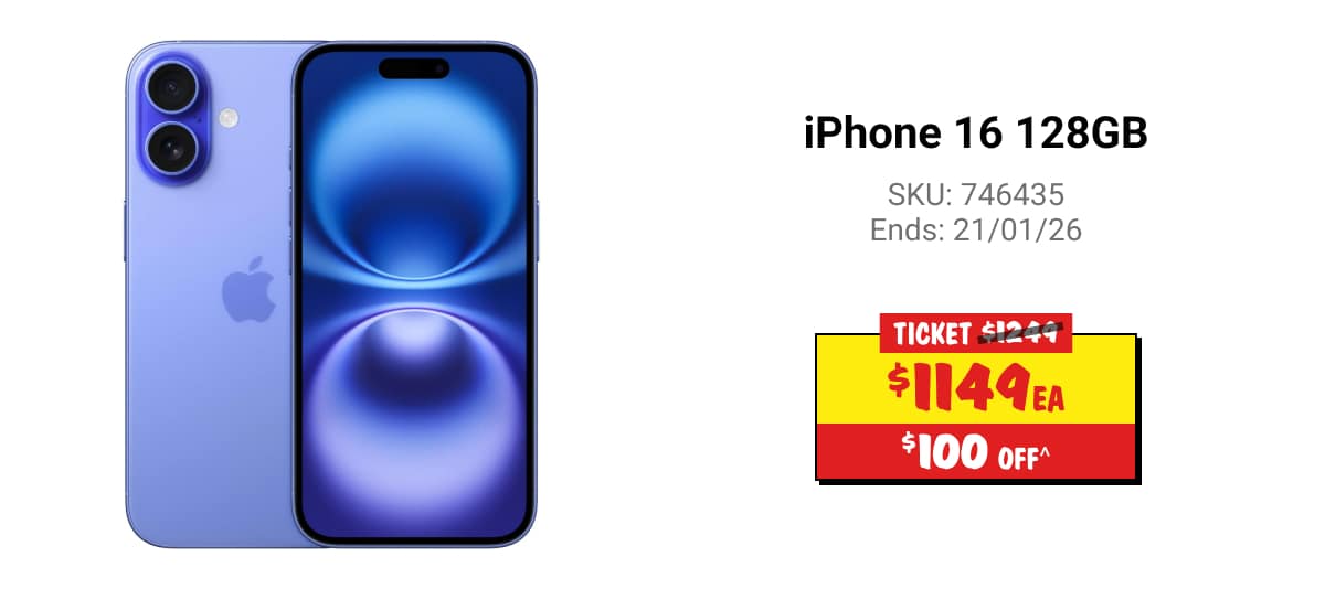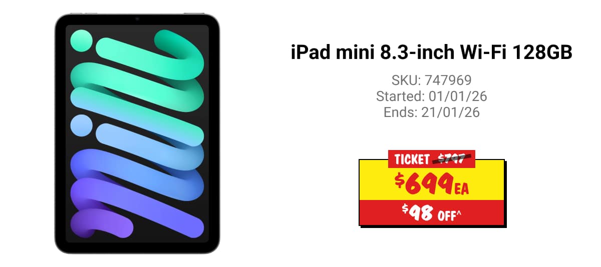 ^Discounts apply to previous ticketed/advertised price prior to the discount offer. As we negotiate, products will likely have been sold below ticketed/advertised price prior to the discount offer. Prices may differ at airport stores. Offer valid until 11:59PM AEDT 28/01/26 unless otherwise specified.