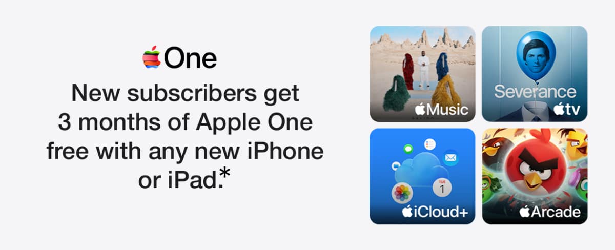 *Ends 11:59PM 10/02/2026 AEDT. Offer must be redeemed within three months after setting up your new device. To see the offer appear, you will need to sign in with your Apple Account on your new device. Offer is not available to current Apple One subscribers, or to previous Apple One subscribers that cancelled their subscriptions within the last 60 days before attempting to accept this offer. The Apple One free trial includes only subscriptions that you are not currently using through a free trial or a subscription. Only one offer per Apple Account and only one offer per family if you're part of a Family Sharing group, regardless of the number of devices you or your family purchase. Upon claiming the offer, you commit to a monthly Apple One subscription at the tier you selected that starts immediately after the free offer period and automatically renews until cancelled. You can cancel at any time in Settings at least one day before each renewal date. If you cancel during your free offer period, you and your family members will immediately lose access to Apple One and the remainder of your free trial. You can't reactivate this trial. For Full T&Cs, visit apple.com/au/promo.